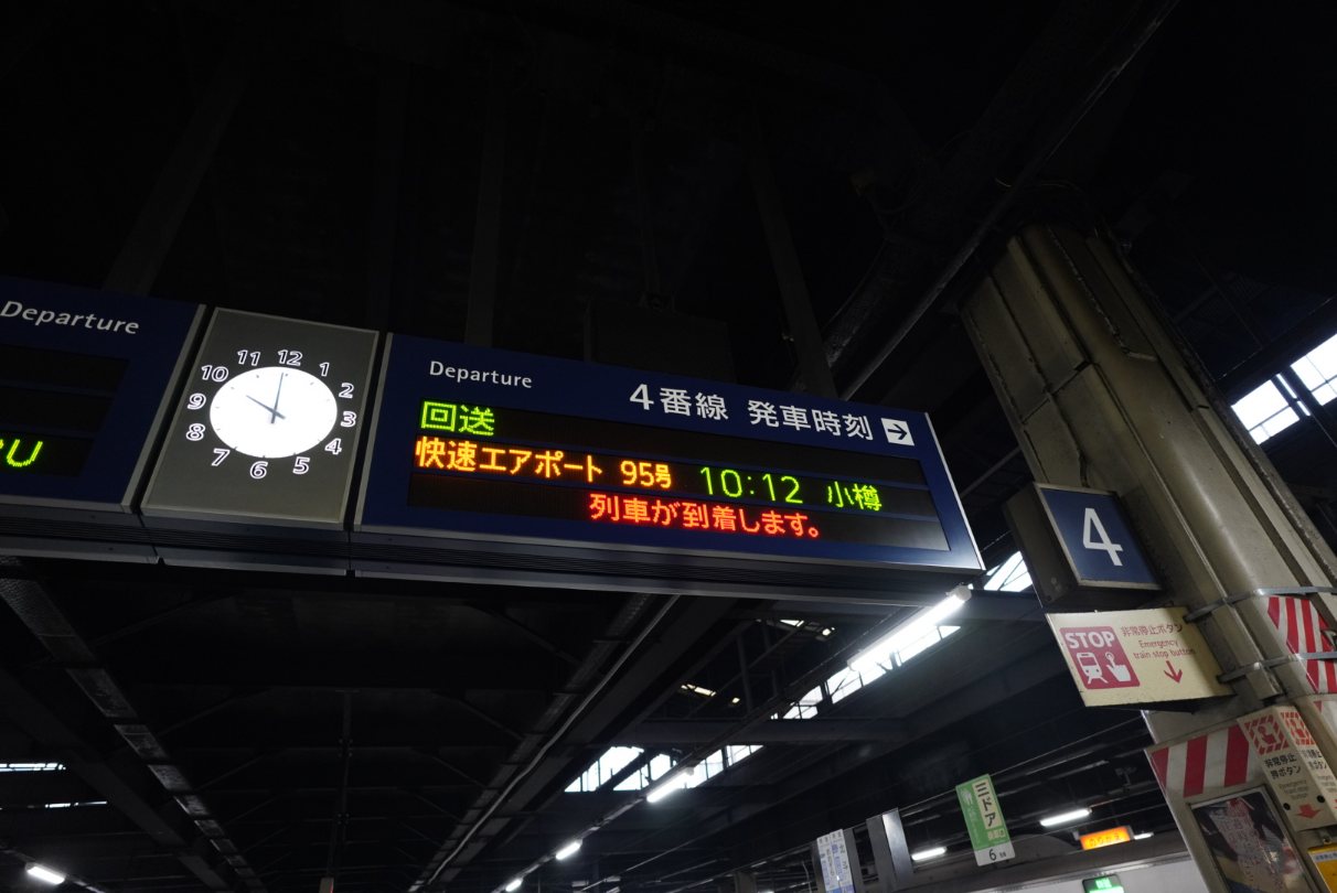 乗車するのは快速エアポート95号小樽行き。1本前のがクロスシートだったので嫌な予感を感じつつ待ちます。きっとロングシートの車両なんだろうなぁ……。