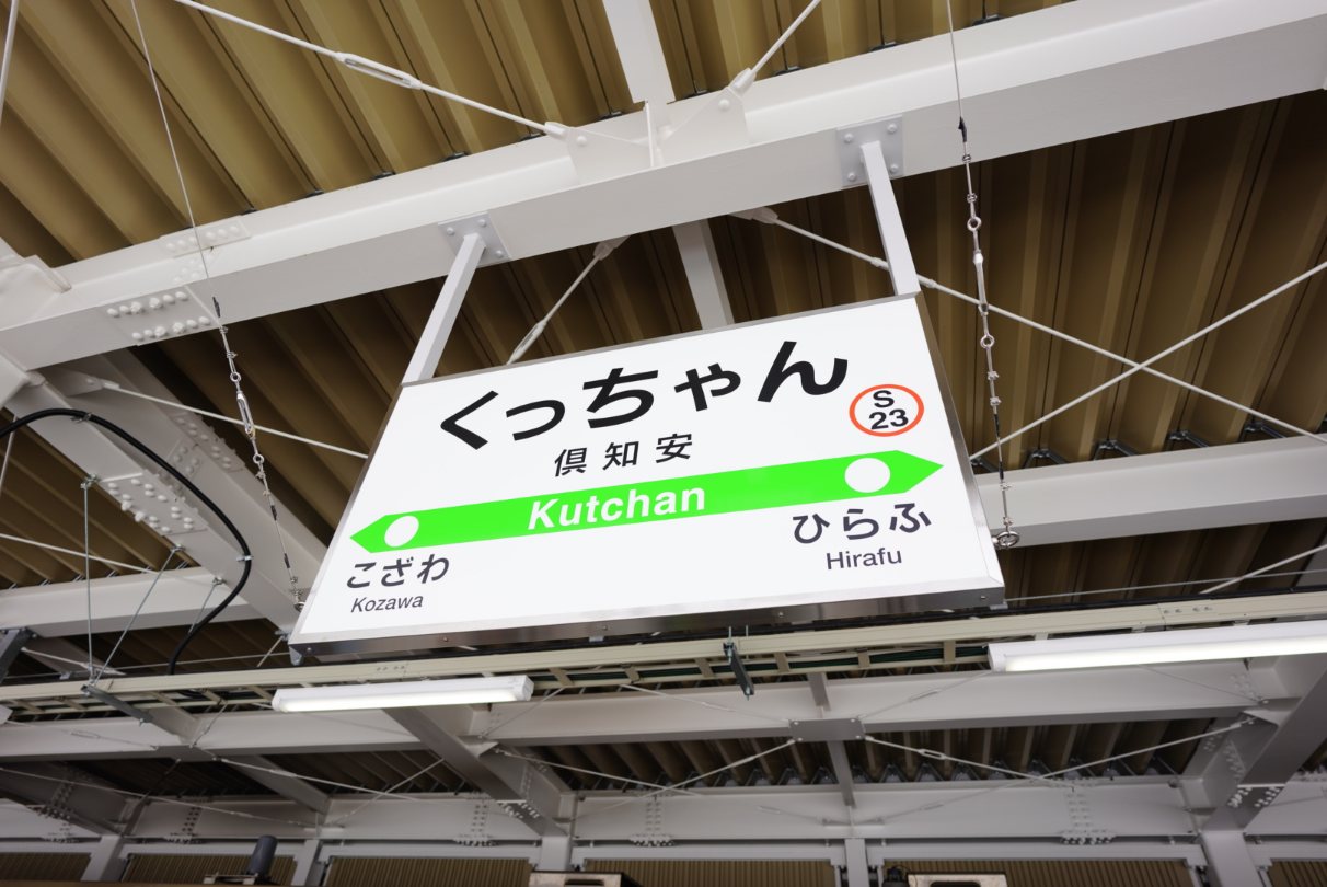 ちょっと小雨が降る倶知安駅。駅舎は以前と同じままの北海道の駅らしい建物です。でもこれ「くっちゃん」読めますか?初見じゃ無理だと思います。