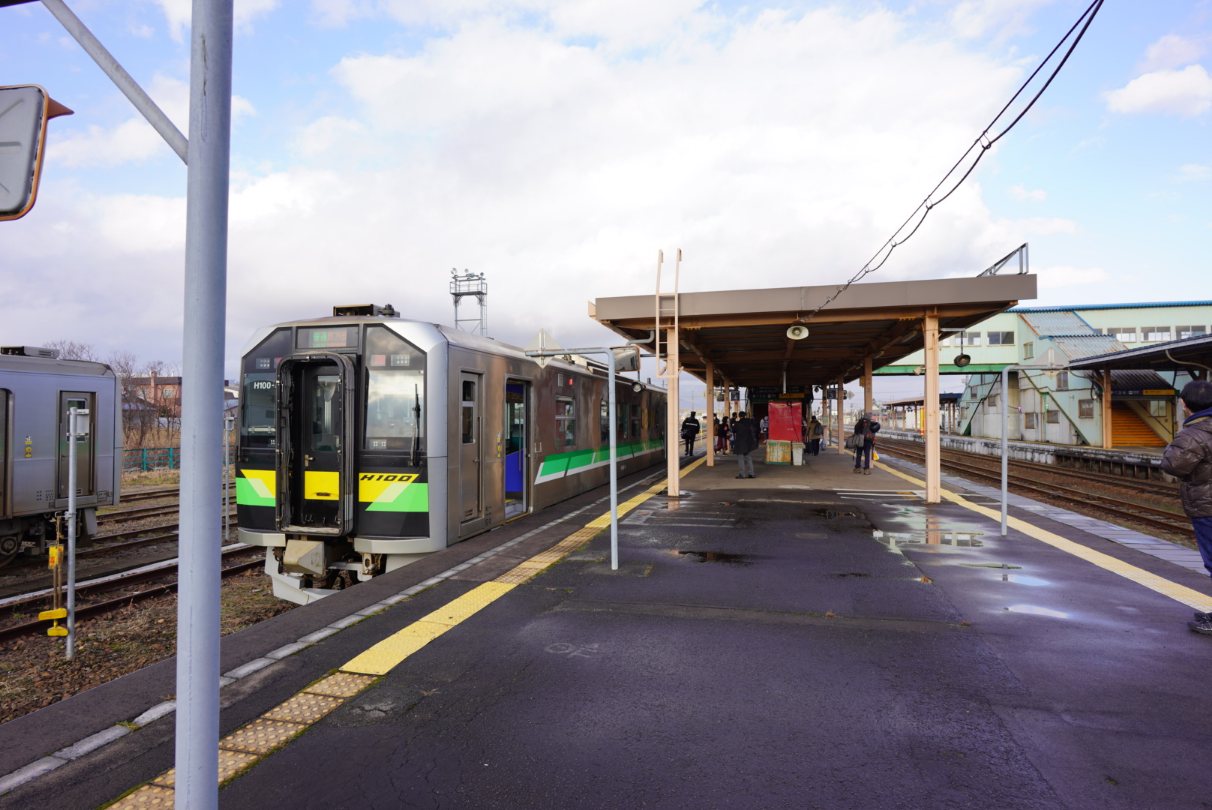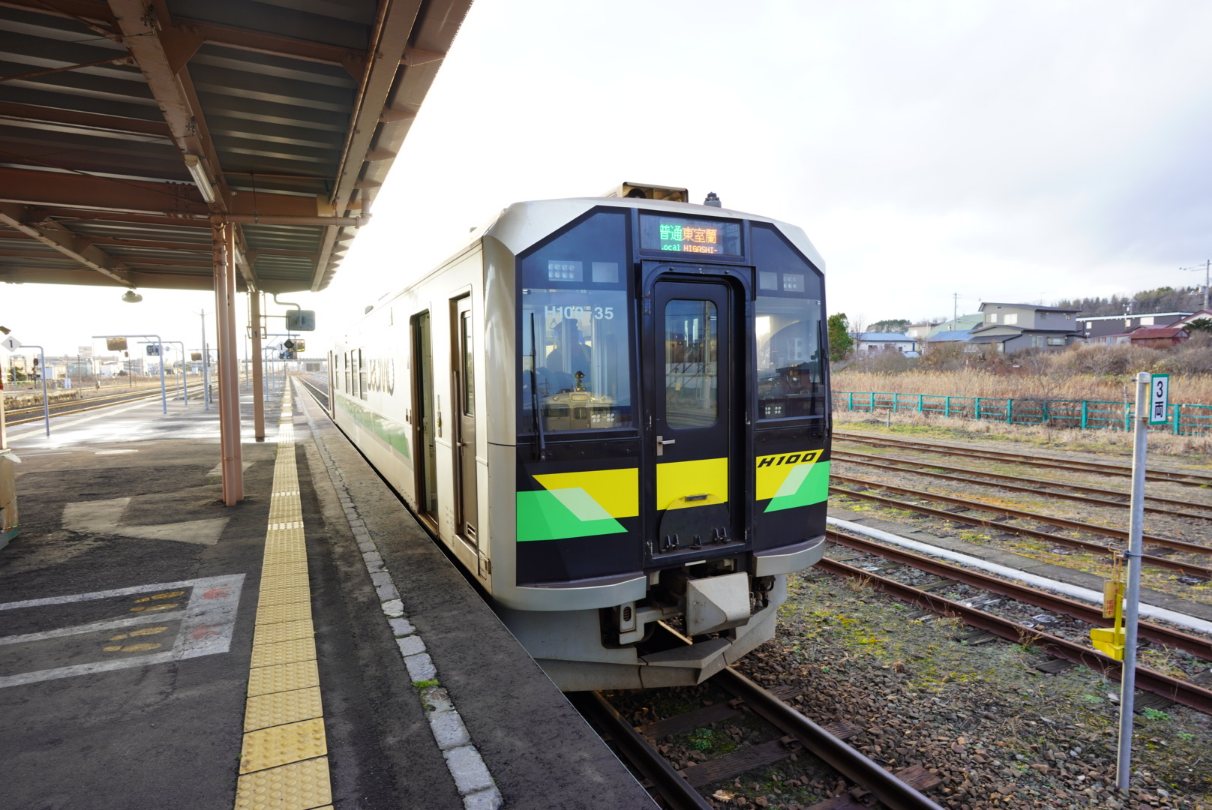 列車は今日たくさん乗っているH100型が引き続きです。乗りたいなとは思っていたけど、こう連続して乗るとそれはそれで飽きが出てくる。先ほどの函館本線に比べると混雑は少なく、乗っていた人の多くは別の場所に行ってしまったようです。