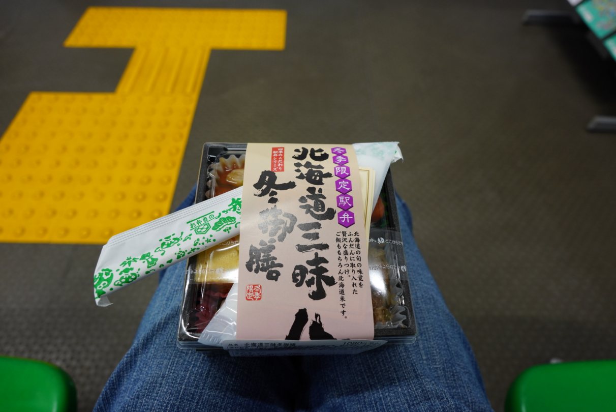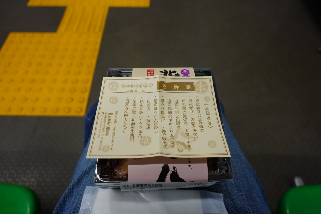 昨日宿泊したホテルで貰ったスマイルサッポロクーポン。それを使って札幌駅の四季彩館で駅弁を買っていたんですが、車内で食べられずに結局長万部駅まで持ってきてしまいました。