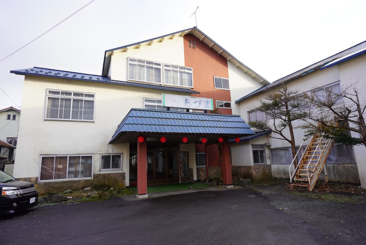 跨線橋を越えて右に進むと、民家の集まりにしか見えないのですが、温泉街に到着です。この中から一番手前のホテルあづまで日帰り温泉に行ってきました。