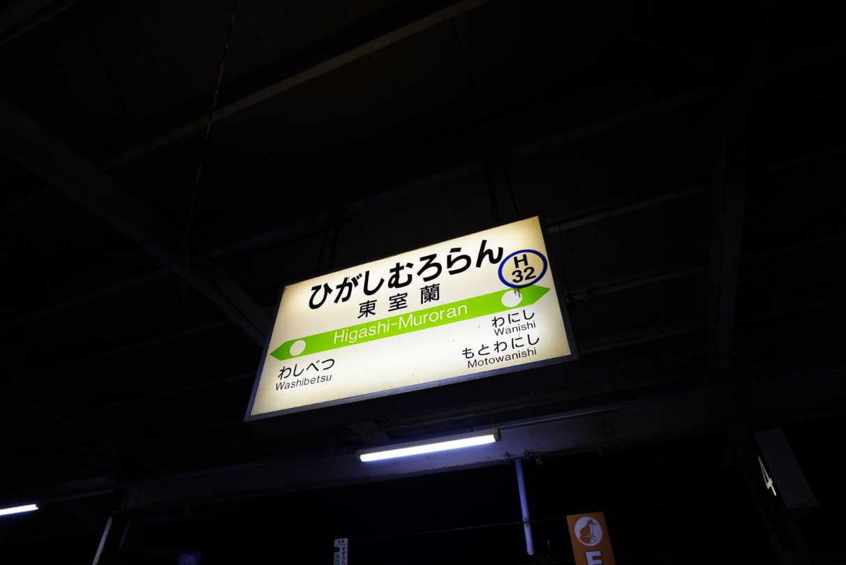 東室蘭駅に着いた頃にはもう辺りは真っ暗で車窓を見るのもできません。ここからの乗り換えで今日の目的地に到着します。