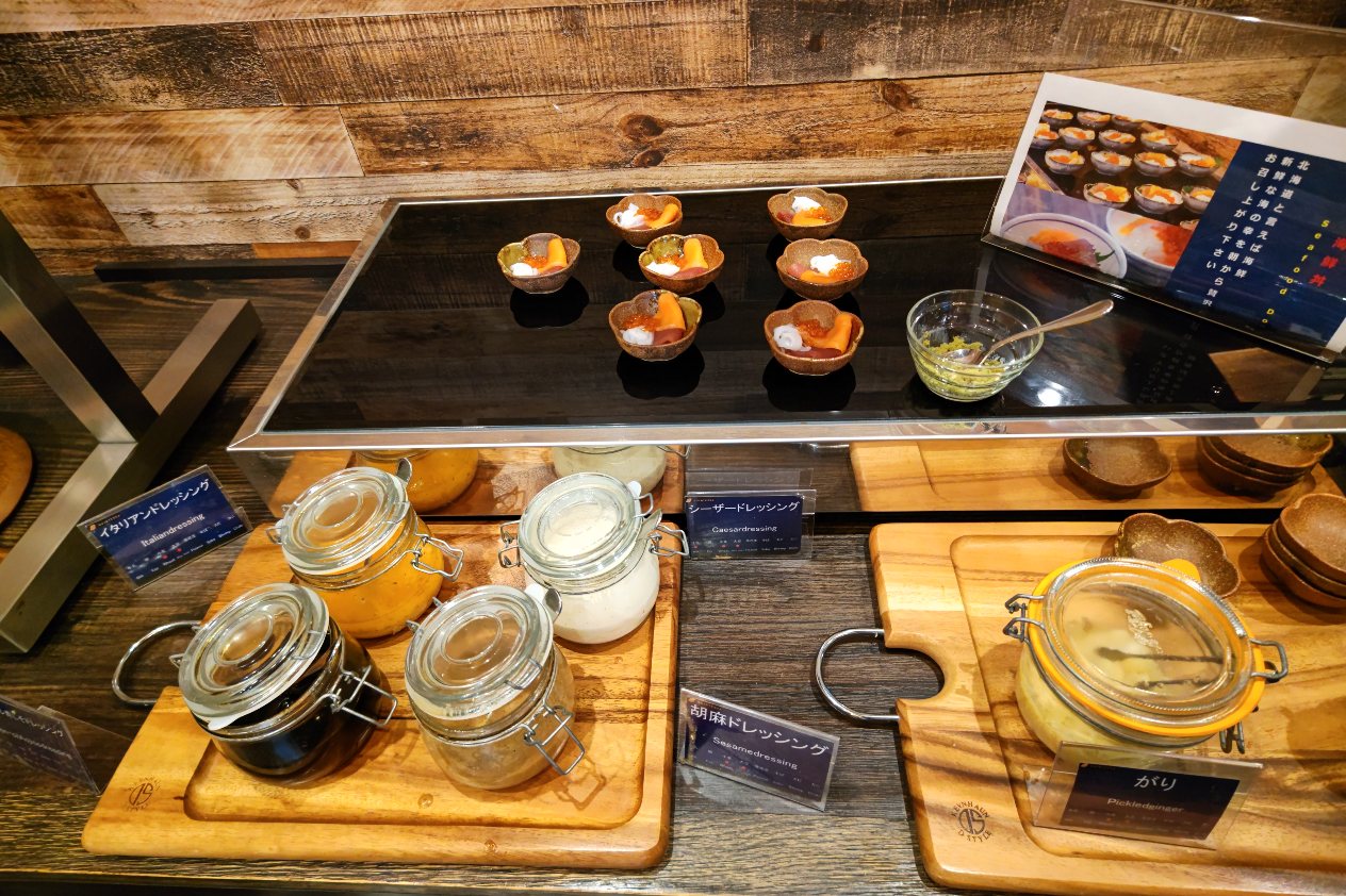 そして海鮮コーナー。小鉢に乗っているのでいくらどっさりとかがやりにくいのが残念。まあ何個も持っていけば良いだけなのですが。あとはサラダコーナーです。