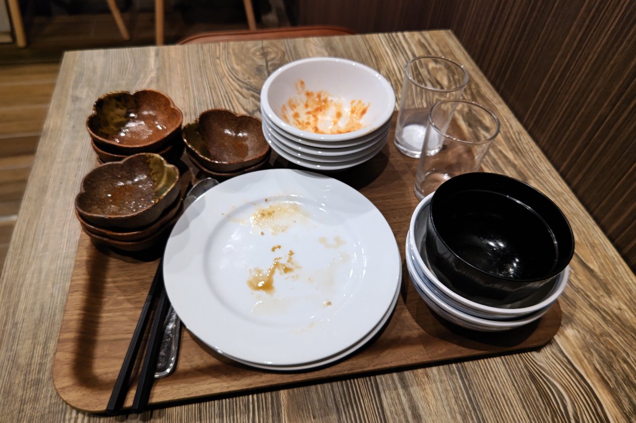 コロナということもあって毎回皿は変えていたのですが、いつの間にかこんなに食べてました。海鮮小鉢8個もあるし……。ごちそうさまでした。
