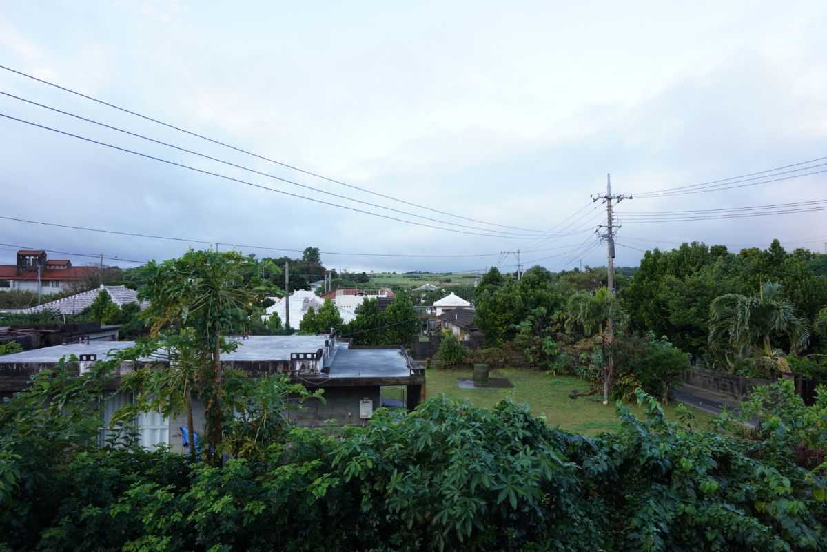 ドアを開けて沖縄の朝。平屋が多いのは沖縄の特徴なのでしょうかね。