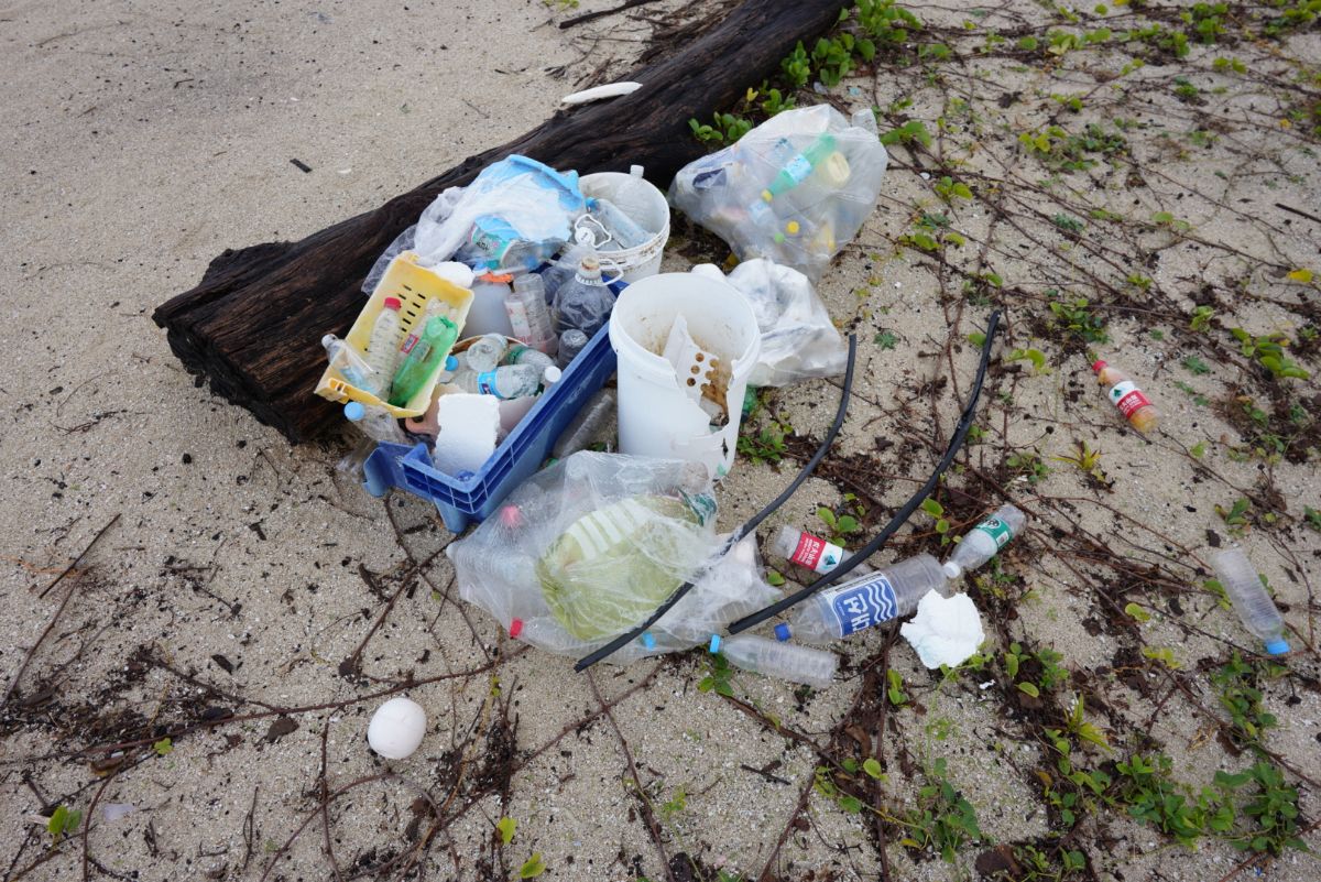 しかし少し手前を見ると最近は話題にもならなくなった軽石の山と、隣の国から流れてきたであろう漢字やハングルのゴミが。しかしなんでこんな固まりになったペットボトルが流れてくるのか少し謎です。