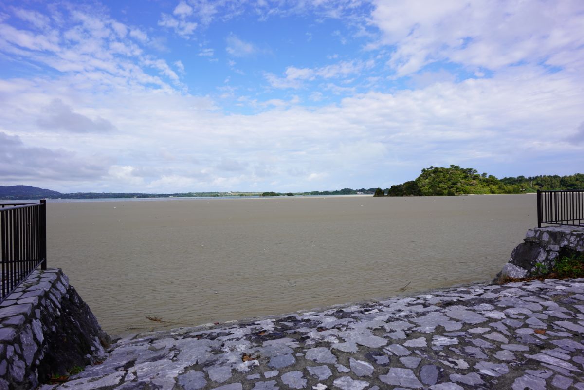 駐車場から橋とセットで海を。綺麗なのですが右手前に軽石が溜まっていて景観が損なわれているのが残念。自然現象なので仕方ないんですけどね。