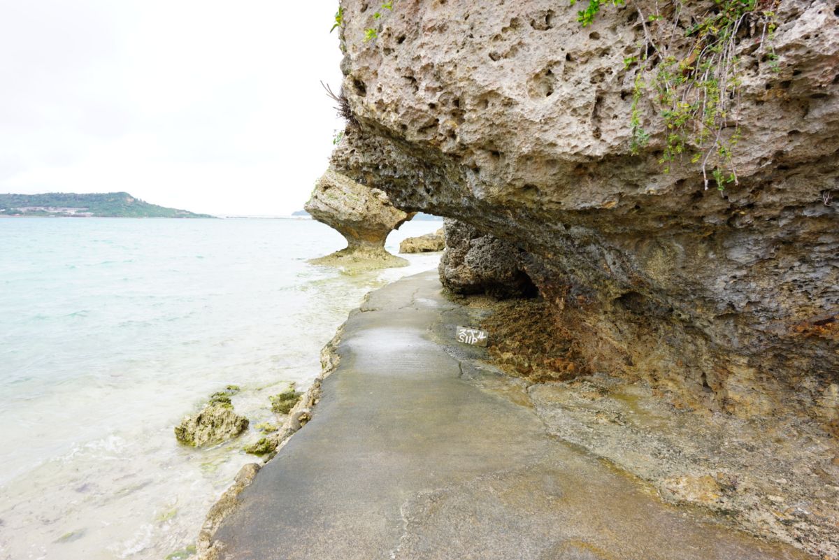 アマミチューの墓へはコンクリートで補強された道を通って行きます。頭上と足元に注意しないと転びます。