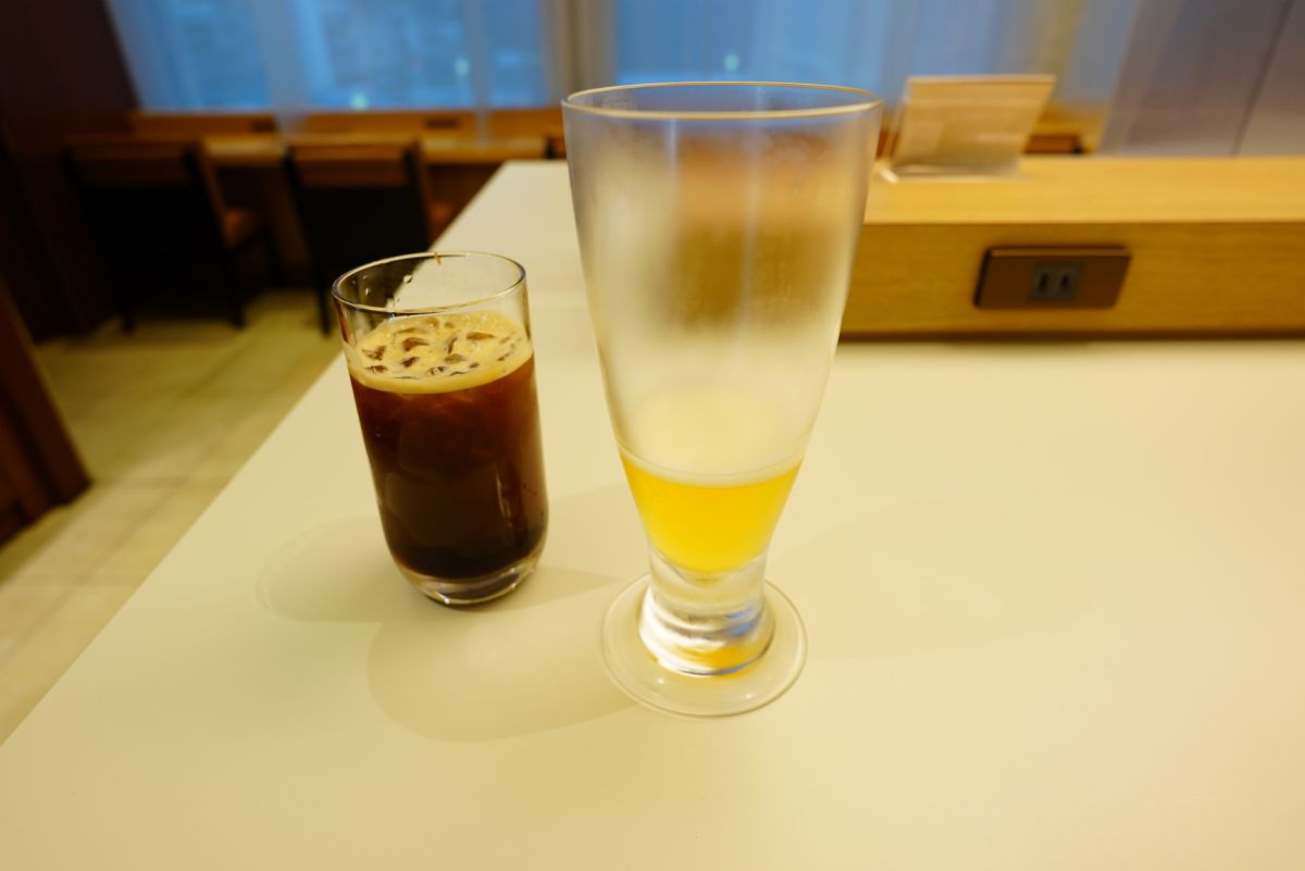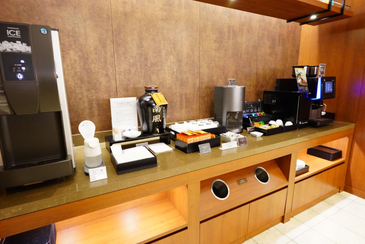 サクララウンジではソフトドリンクとアルコール(泡盛、オリオンビール)、ハッピーターンが提供されています。しかしこの誰も話してないサクララウンジでアルコールを20時までにする意味ってあるんでしょうかね。