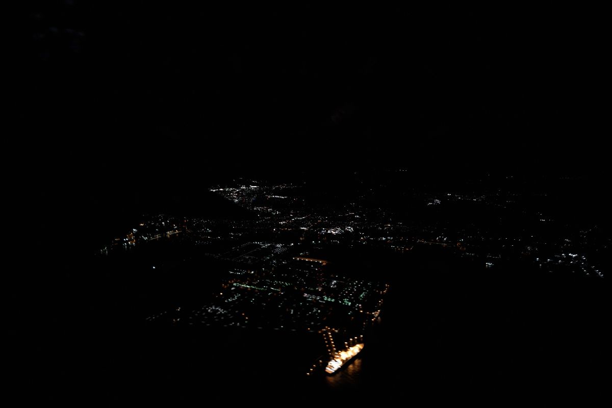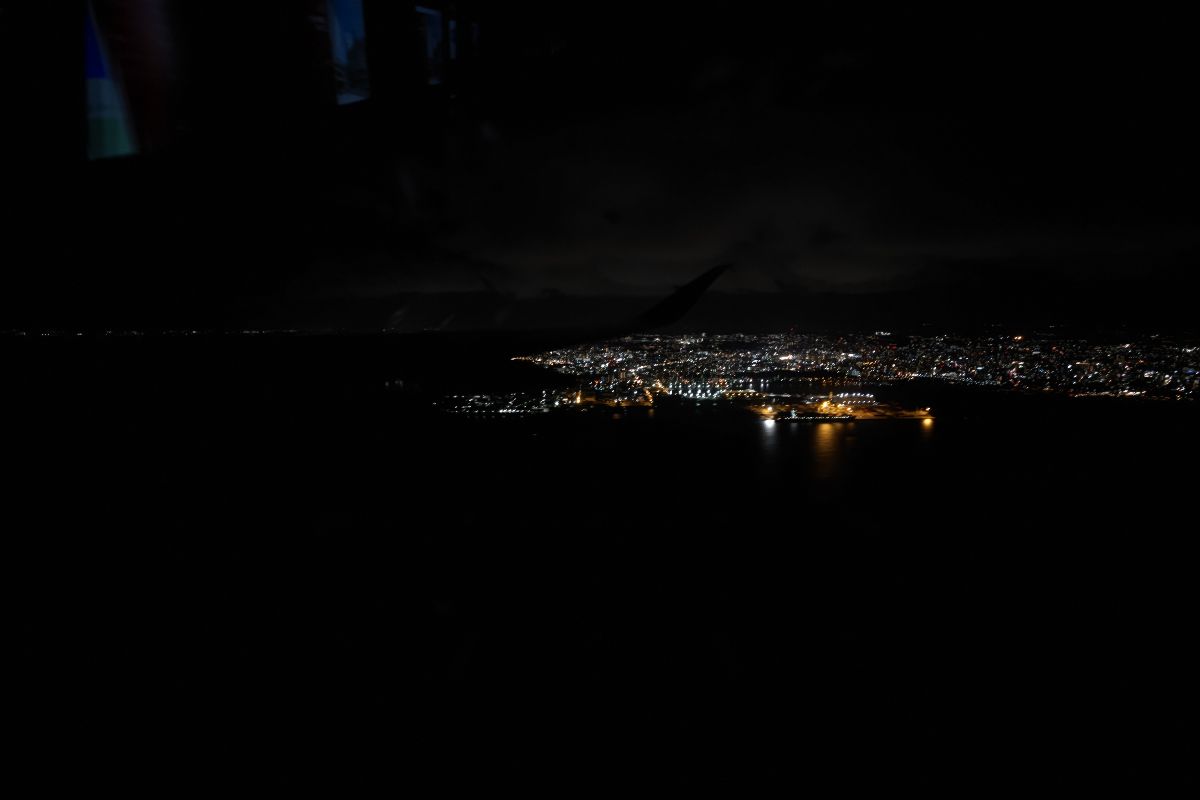 夜間のフライトということで、夜景が良く見えました。2時間程度のフライトですが、ブログとか書いていたらあっという間でしたね。