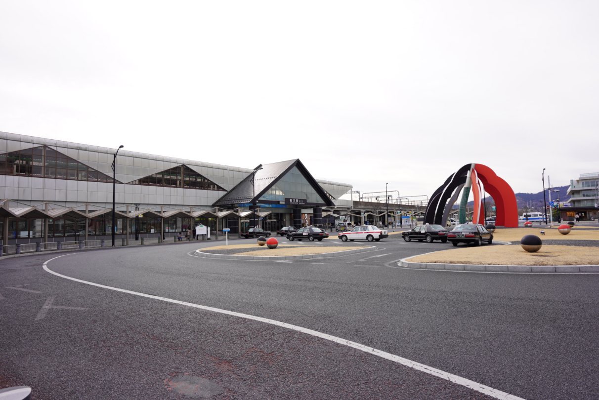 大きな北口ロータリーに送迎バスが来るので待つことに。どんなバスが来るのでしょうかね。