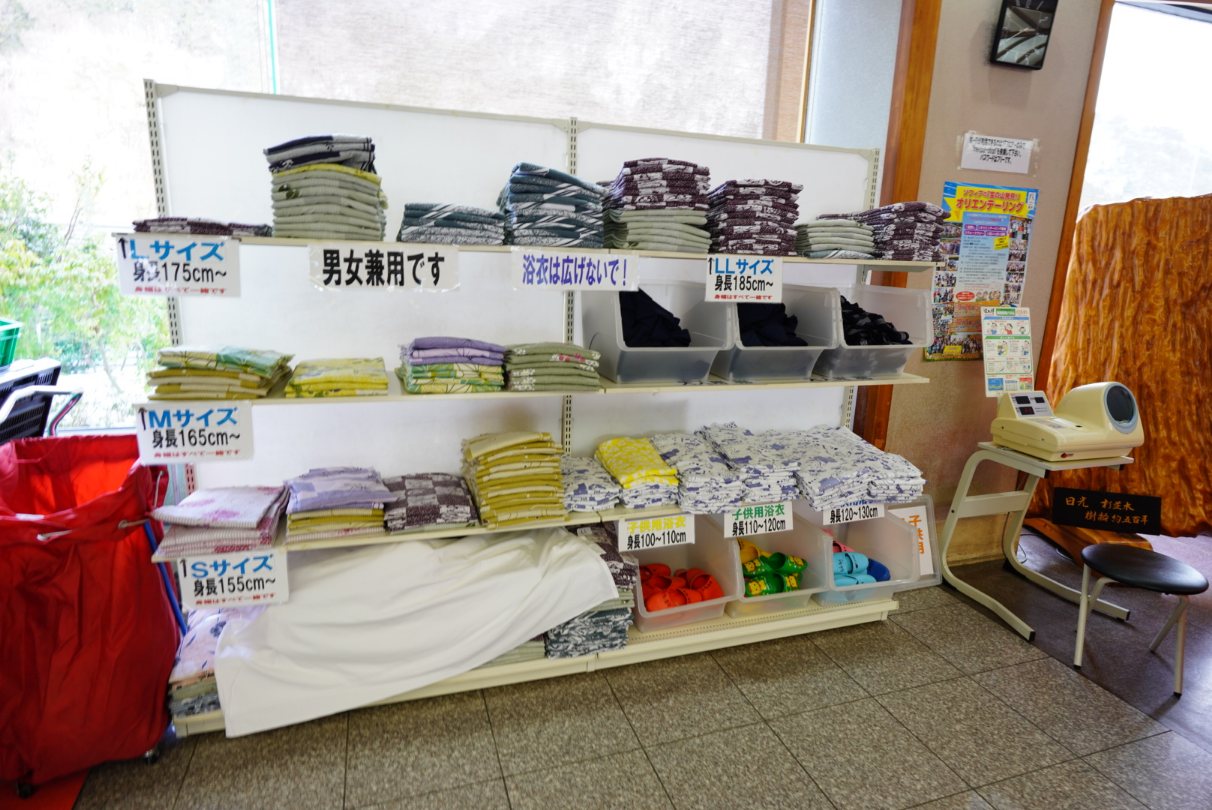 フロント前では浴衣が選び放題。大きなサイズから小さなサイズまであるので、サイズが無いってことはないと思います。