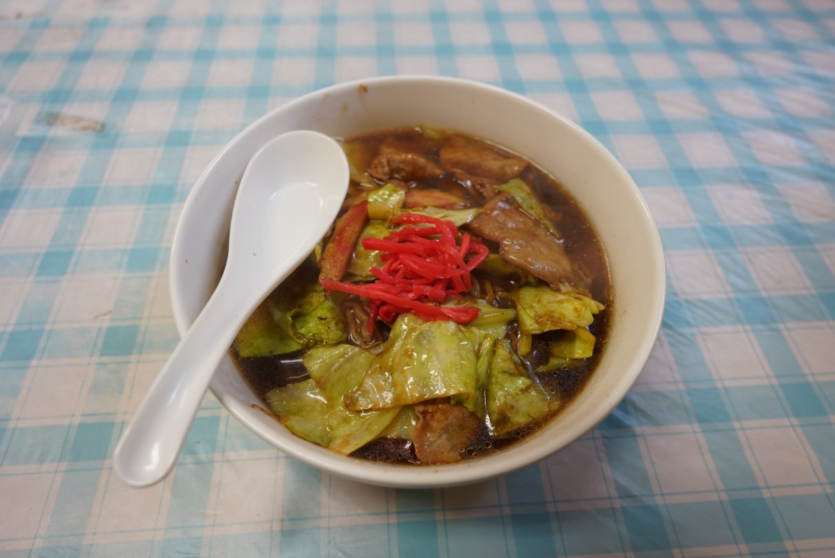 濃い目の醤油スープに焼きそばが入っているという面白いB級グルメです。初体験だけどこれは結構いける。キャベツもたっぷり入ってて食べ応えも十分です。