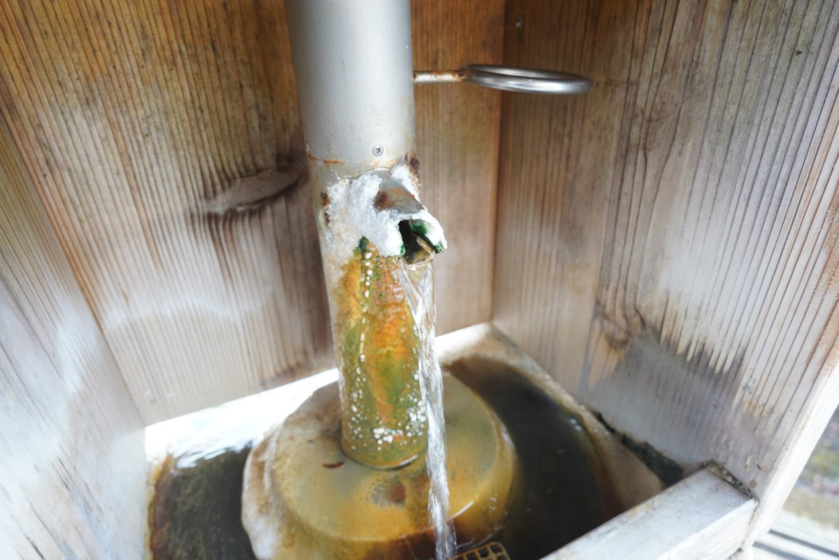 足湯施設は200円ですが、この飲泉コーナーは無料で飲むことができます。若干塩味もあるけども飲みやすい温泉です。