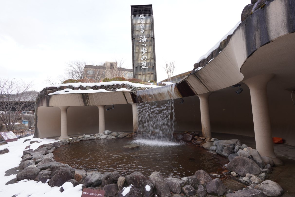 食後の腹ごしらえということでお散歩。湯っ歩の里という足湯施設にやってきました。といっても目的は足湯ではなくて中にある飲泉コーナー。