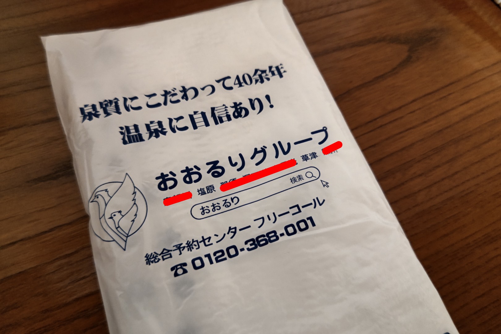 そうそう。おおるりのタオルが入った袋があったのですが、おおるりグループ「鬼怒川・塩原・那須・湯西川・奥日光・草津・熱川」と書いてありますよね。