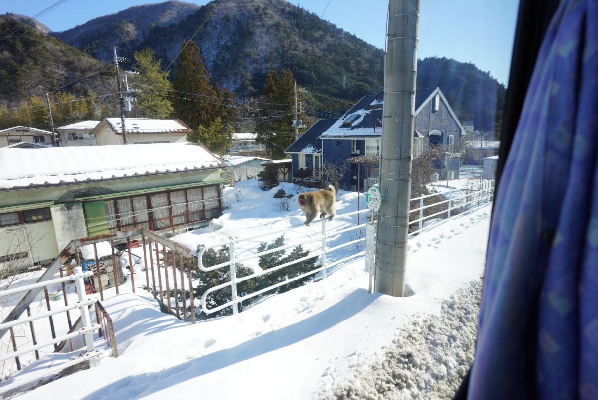 ホテル周囲には野生のニホンザルが。車の中から見る分には良いんですが、目の前に居たらそれはそれで怖いかも。
