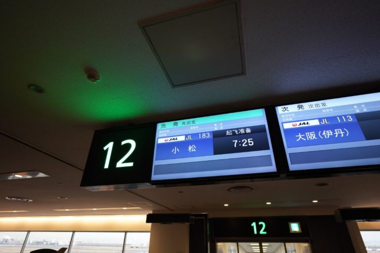 羽田空港に着いて保安検査をさっさと受けて搭乗口へ。今回のフライトは12番搭乗口からの小松便です。北陸新幹線によって需要が落ちてしまいましたが、運賃的にはメリットがあります。