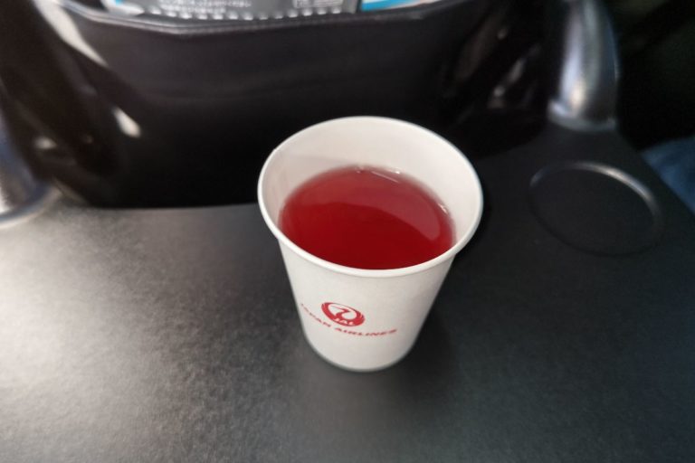 機内のドリンクはJALオリジナルのドリンク。せっかくならこれ飲みたいですよね。しかし小松便は飛行時間が40分ということもあり、ドリンク出てすぐ着陸態勢と慌ただしいです。