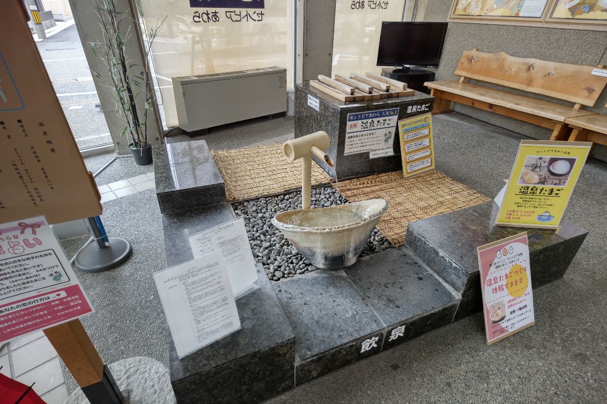 入り口には飲泉もあり、塩味のある温泉を飲むことができます。また温泉たまごを40円で作れるというのもあったり。