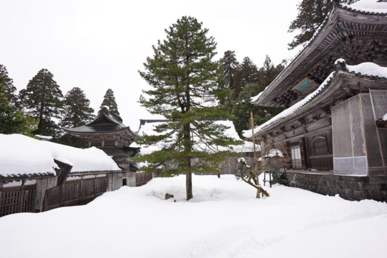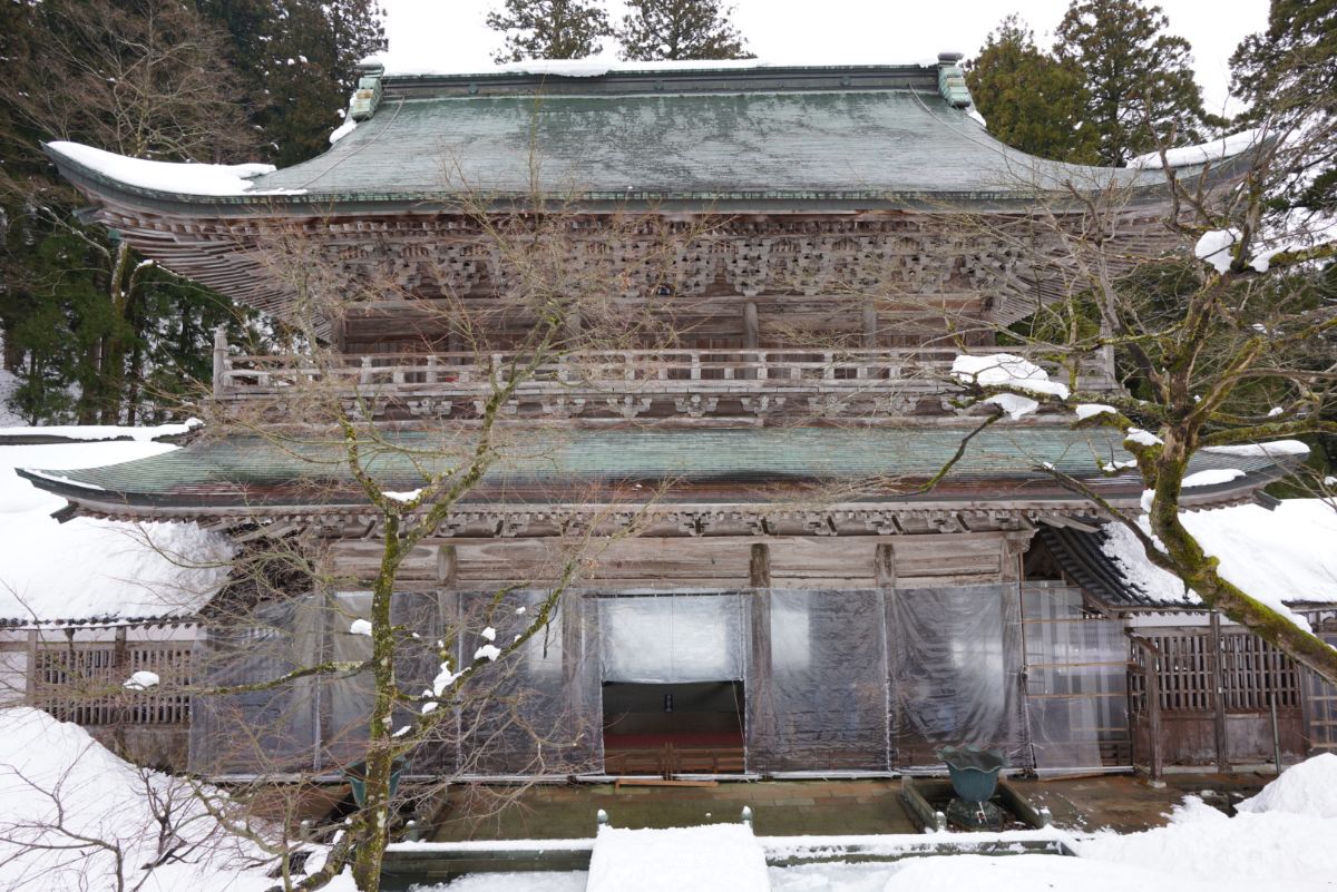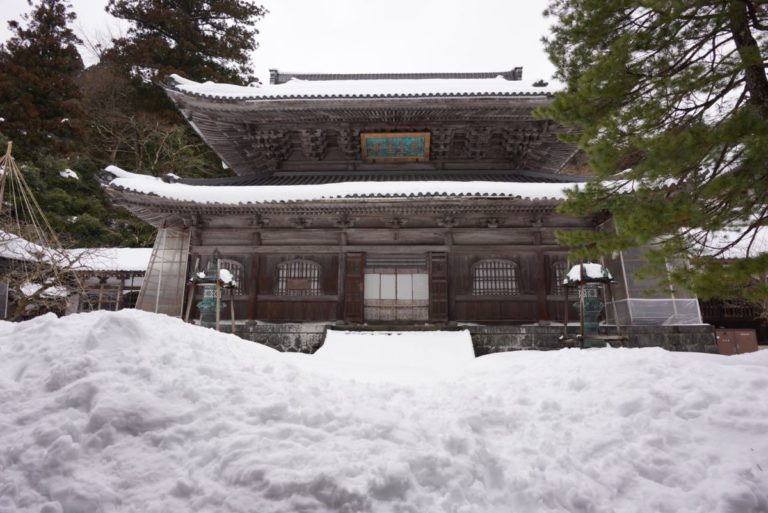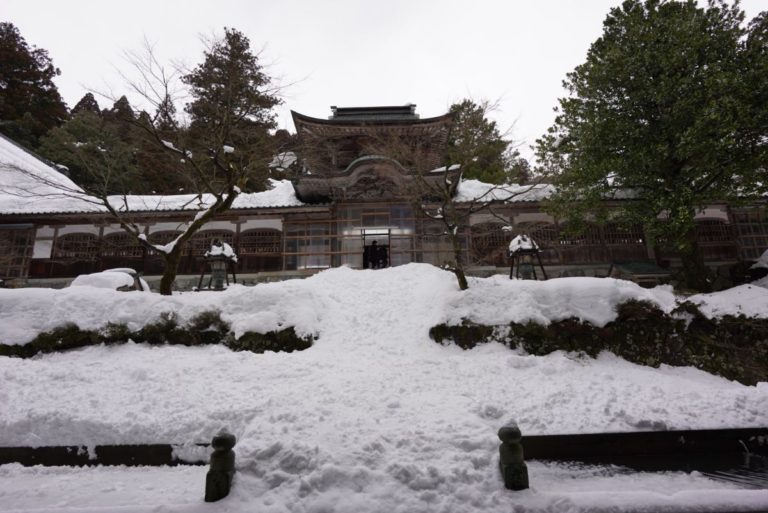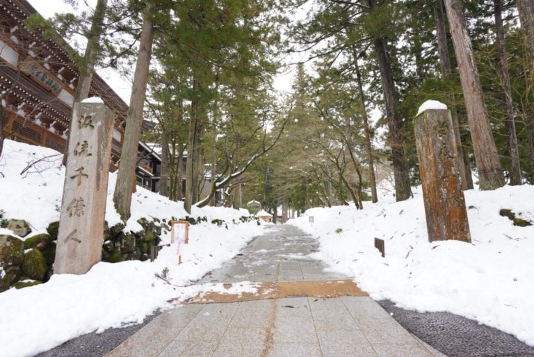 続いて永平寺の最古の木造建築である山門から中雀門を眺めます。こういうお寺ってやっぱり雪が似合うような感じがするのは私だけでしょうか。
