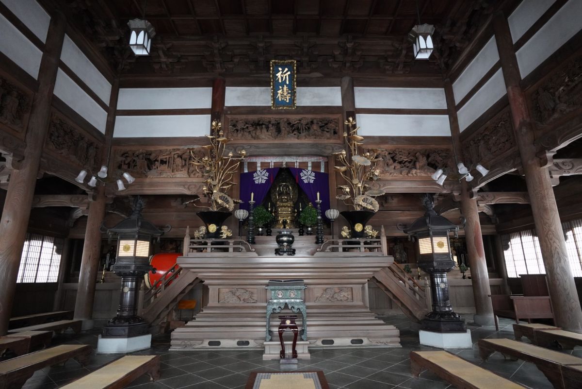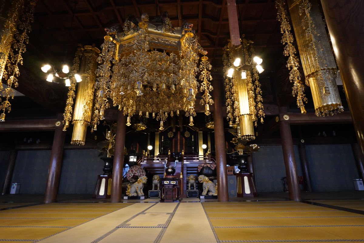 先ほど外から見た仏殿の中にも入ることが可能です。良くお寺とかで法要をするような場所よりも豪勢な感じ。ベンチが多く設置されているので、座って何かする場所なのでしょうか……?