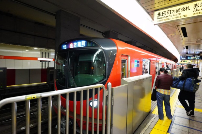 国会議事堂前駅では千代田線から乗り換えですが、長い階段を上っていくとちょうど列車が来ていました。予定の1本前に乗れたので新宿でバスに行く時間がゆっくり取れそうです。