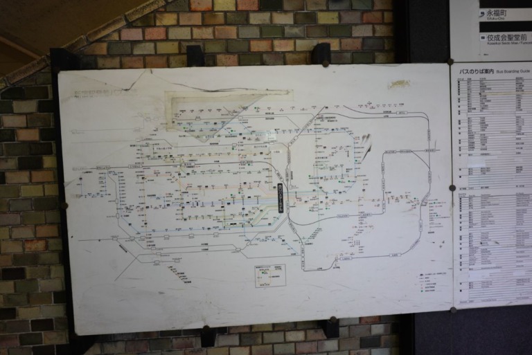 良くこういう表記が古い看板でも、新規にできた路線が上から書いてある場合もあるのですが、これは全く追記されておらず、副都心線もなければ、大江戸線も記載されていません。同じ東京都交通局くらいは記載しては良いのでは……。
