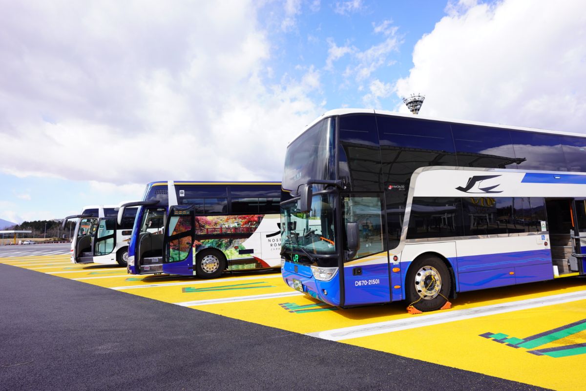 戻る時にバスが何台も並んでいるので、乗るバス間違えないようにしましょう。手前は京都、奥は浜松まで行ってしまいます。