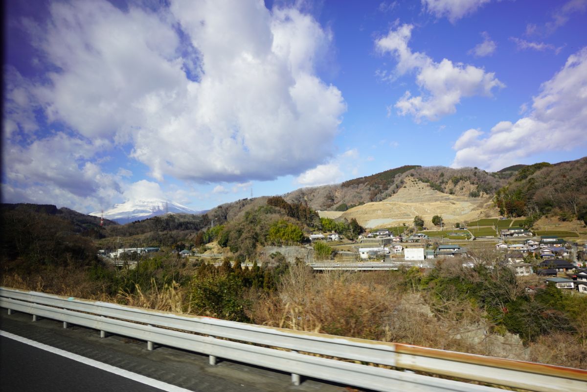 途中右手に富士山を眺め……雲が掛かってますね。せっかく富士山の近くにやってきてるのにちょっと残念です。明日に期待かな。