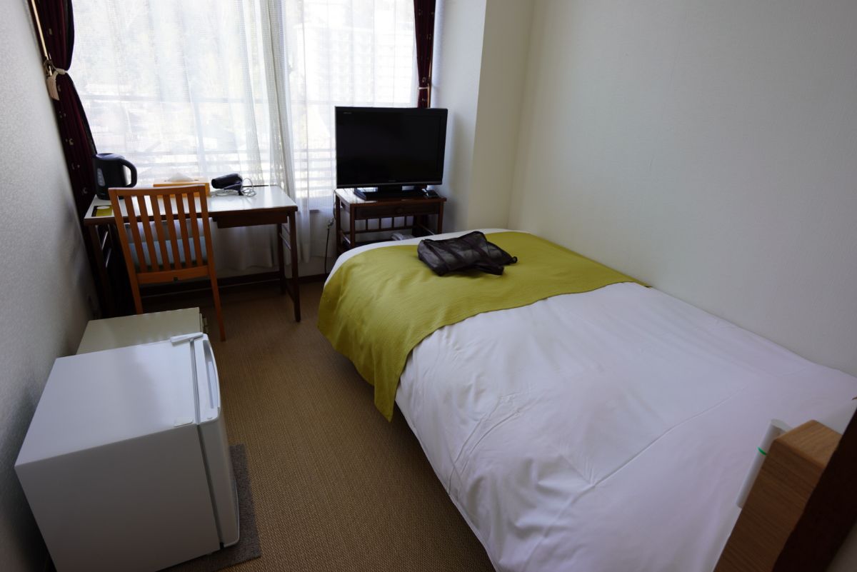 それでは部屋に向かいましょう。部屋は今回「ビジネス」ということで、シングルの洋室となっています。温泉旅館という雰囲気はないけど、まあ温泉入って美味しいご飯食べられればそれで充分です。
