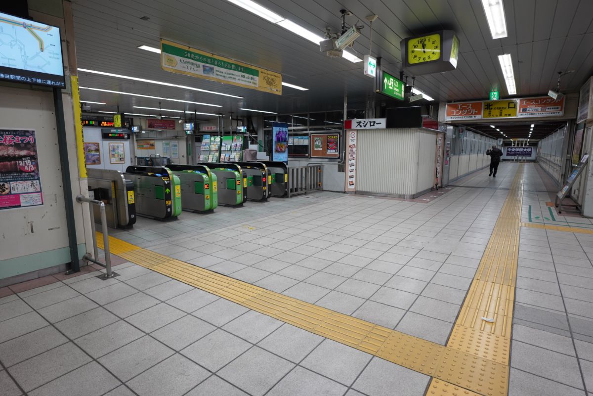 始発の時間が近づいてきたので駅へと向かいます。まだ真っ暗ですが、結構人の気配があるのはさすが都心といったところ。