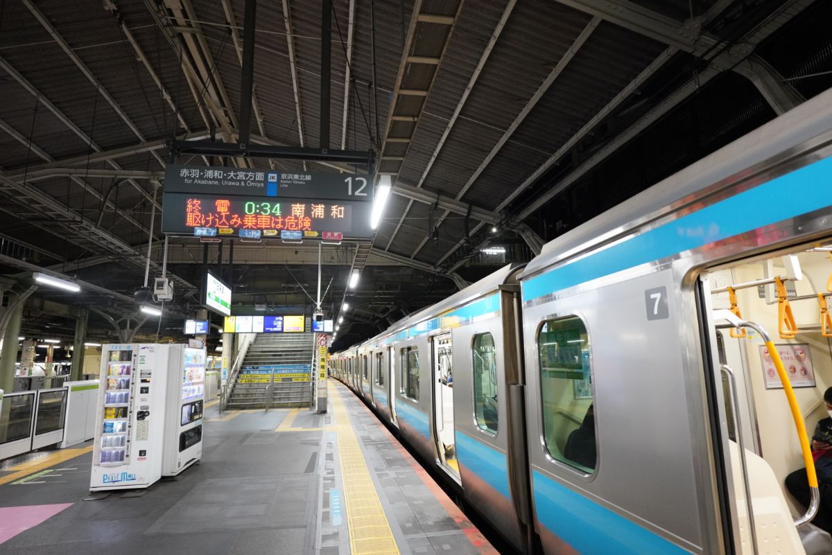 京浜東北線の最終列車が20分ほど待っていました。これに乗って田端駅で山手線の最終列車に乗り継ぎます。