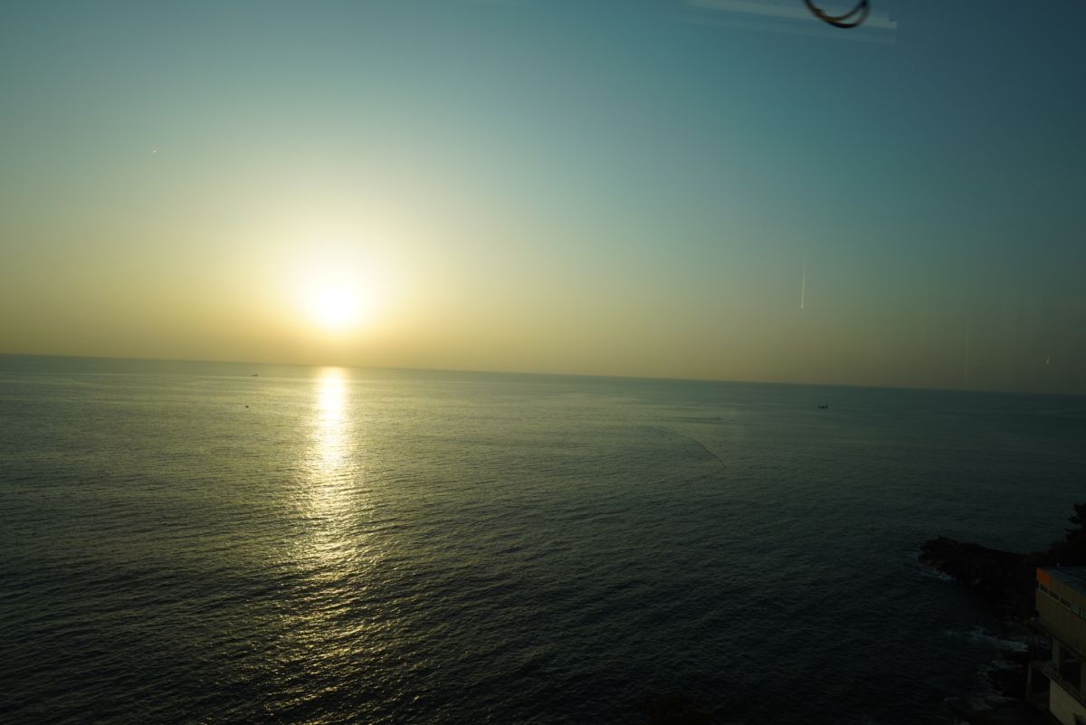 小田原から乗車して根府川に到着する前辺りの景色。朝日と太平洋が綺麗ですね。一度くらいは降りてみたい駅でもありますが、毎回通りすぎている……。