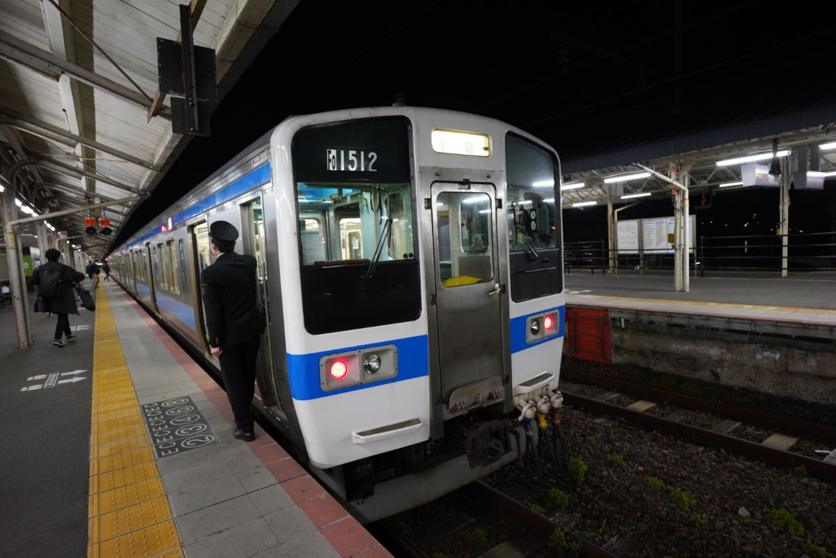 九州方面の最終列車。乗車時間は14分ですが、やりきったウイニングランのような感じ。