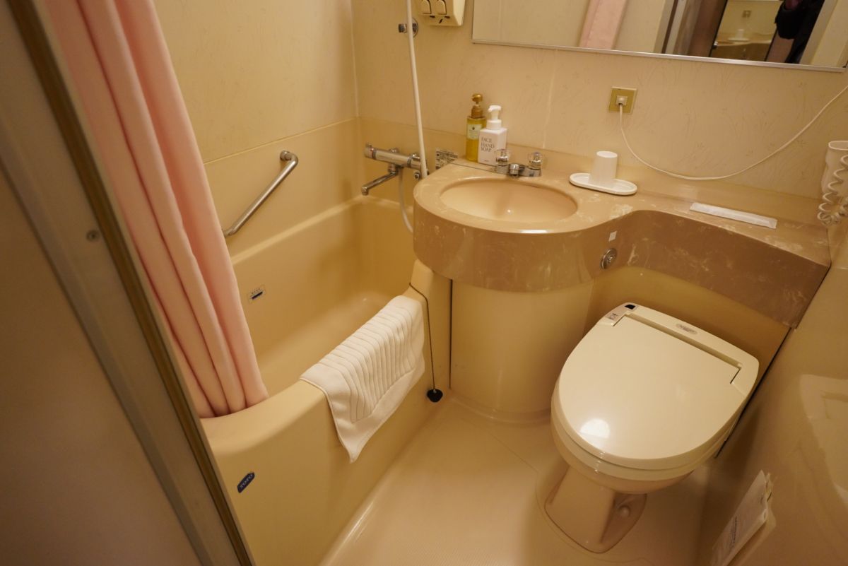 テーブルやバス・トイレも一般的なビジネスホテルという感じ。なお大浴場があるので明日の朝に入ろうかなと思ってます。