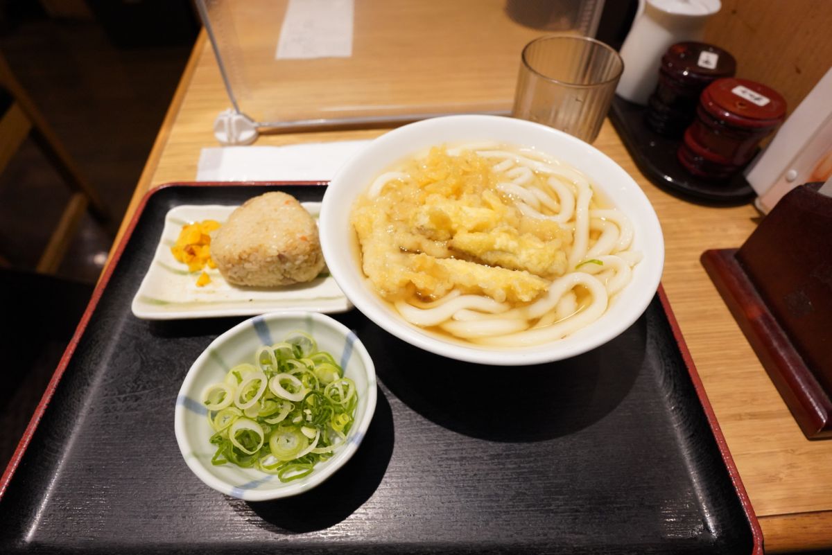 朝ごはんを食べ損ねたので朝ごはんを食べようということで、博多駅地下にある大福うどんという店でゴボ天うどんとかしわおにぎりを食べてきました。