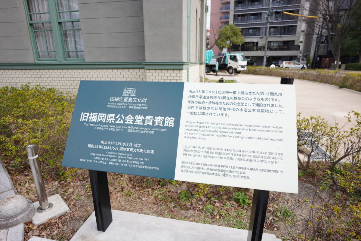 左手の公園に洋館風の建物が見えてきたので見に行ってみました。ここは旧福岡県公会堂貴賓館という場所らしく、内部も公開されているけど時間がないのでパス。今度来てみたいですね。