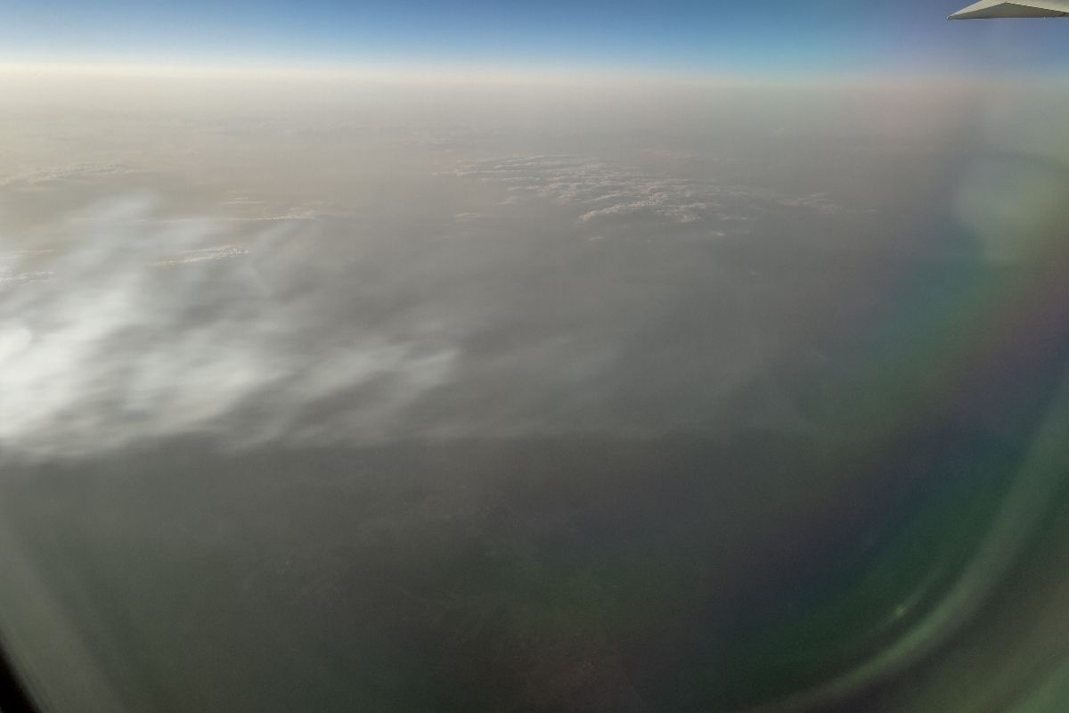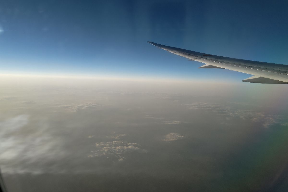 飛行中に外を見ると、エンジンの裏から飛行機雲がリアルタイムに生成されていました。こういうの初めて見たので感動です。