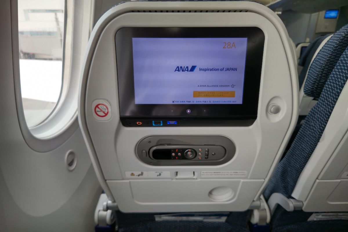 機体はボーイング787。USB電源が付いているので嬉しい。でも個人的にはコンセントがあるほうがありがたいかも。
