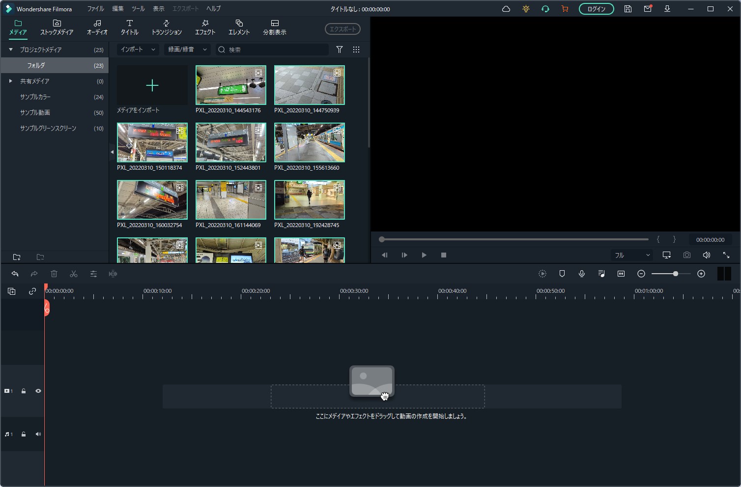 素材全てを挿入して準備完了。ここから文字やエフェクトを挿入してオリジナルの動画を作っていきたいと思います。