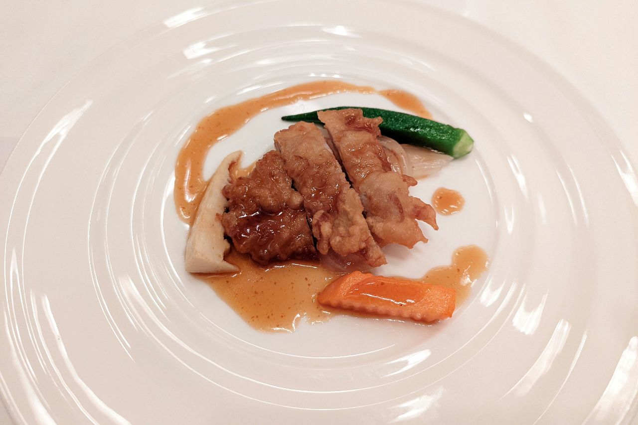 豚ヒレの梅酢仕立て。揚げ物ではあるけども、梅酢のおかげでさっぱりと食べられます。カリカリした衣も美味しい。