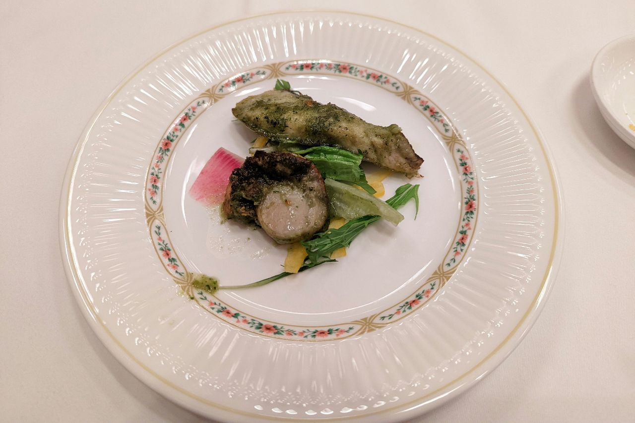 次に出てきたのはホタテとサワラの香草(ハーブ)焼き。味ももちろんですが、香りも楽しめる一品です。