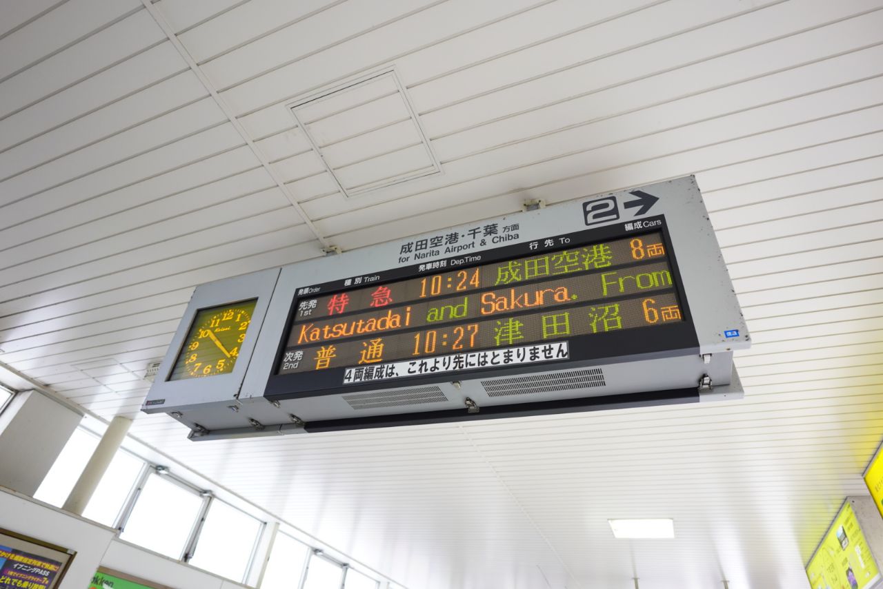 乗車するのは特急の成田空港行き。成田空港まで座っていれば連れていってくれるので楽々です。船橋からはJR総武線側も成田空港行きが出ていますが、ここでJRを選ぶ理由は……。