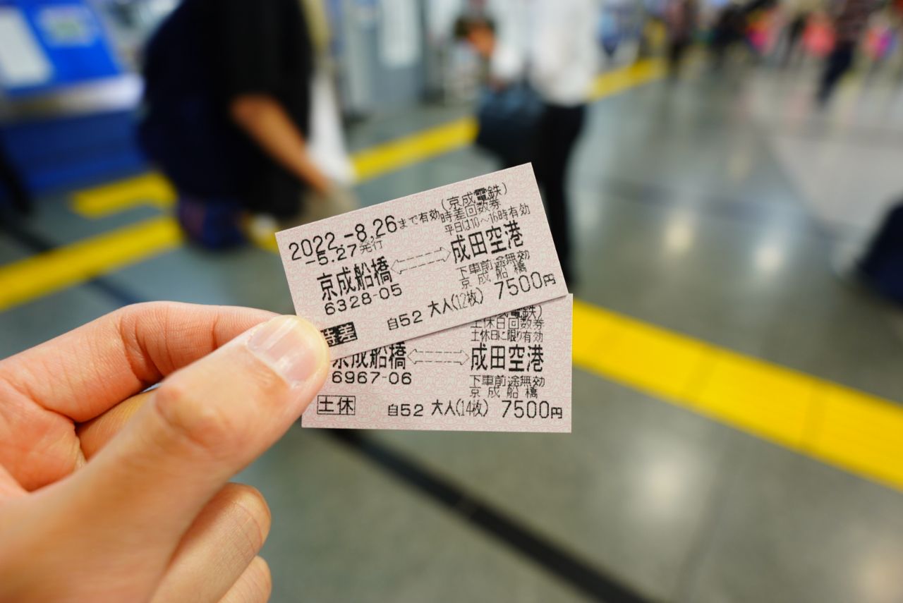 京成船橋駅の下にあるアクセスチケットで回数券を購入。行きは時差、帰りは土休回数券を使っていきます。往復で200円くらい安くなりました。