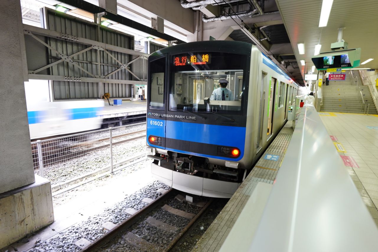 船橋までは約20分。途中停車駅は高柳と北総線・新京成線乗換駅の新鎌ヶ谷のみとなっています。野田線の急行は残り春日部~運河のみが各駅停車なのですが、そこが急行運転されれば大宮⇔船橋の移動も東武に軍配が上がりそうです。