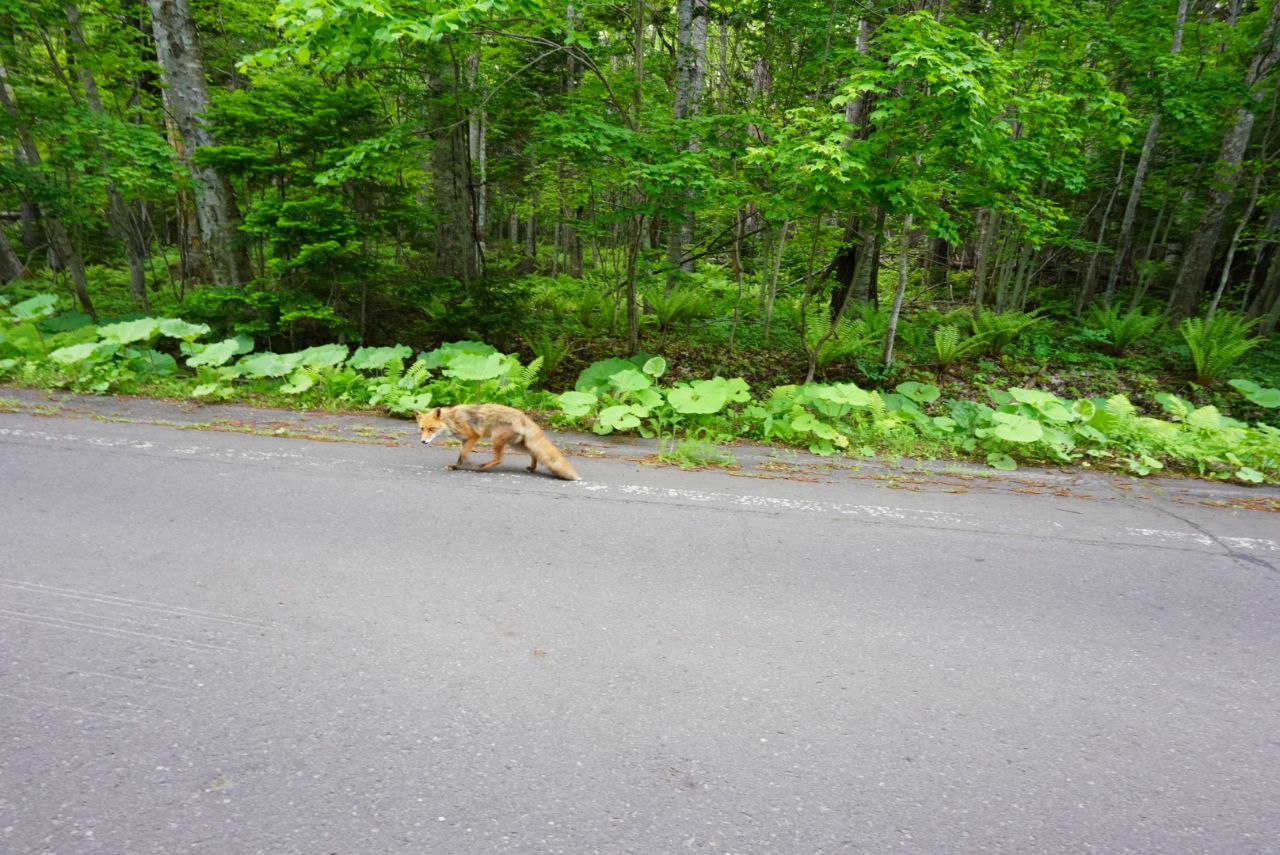 途中の道で鹿やらキツネと遭遇しながらも川湯温泉に到着。この辺りはかなり鹿が居るので走行には注意が必要です。