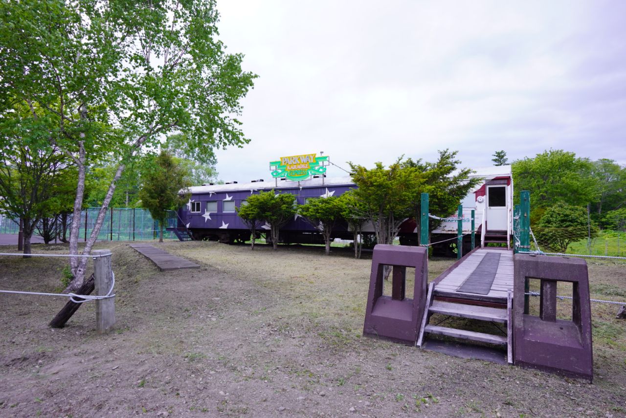 屋外には客車のようなカラオケボックスも。入ってみたい。