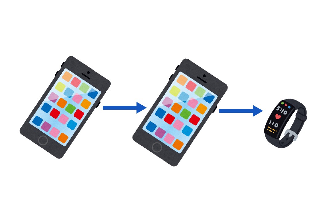 今までの運用は2台のスマートフォンに対してスマートバンドを紐付けて通知の確認を行っていました。1台はあまり通知が来ないとはいえ、通知が見られないのは困るなということでこんな運用に。