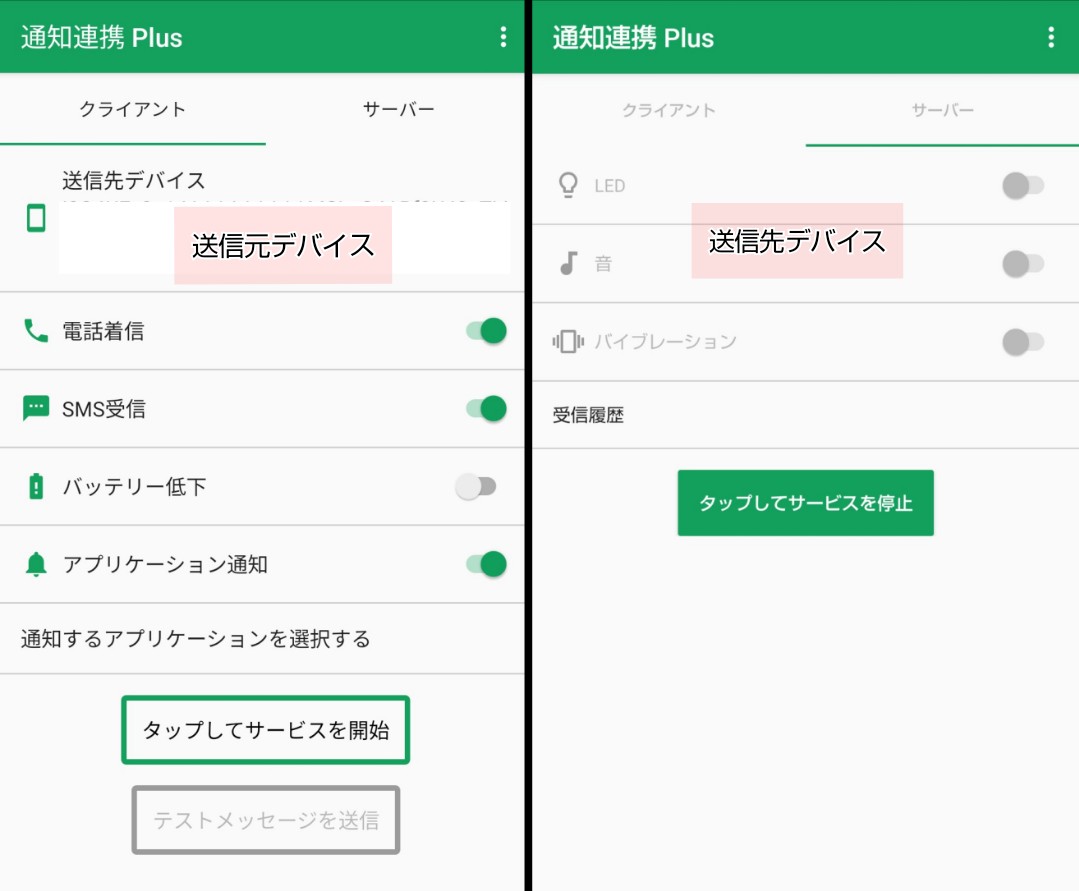 直接転送できるソフトがないかと思って調べた結果見つけたのがこの「通知連携」というアプリ。Bluetooth経由で通知を飛ばせるということで、まさに求めていたアプリという感じです。